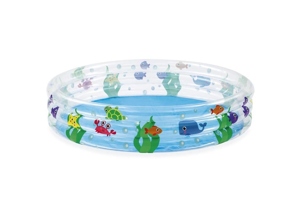 Špička medzi detskými bazénmi, ako stvorený pre detské huncútstva vo vode - nafukovací bazén Bestway® Deep Dive ponúka veľa zábavy pre deti, ktoré majú 2 a viac rokov a zároveň milujú špliechanie v bazéne počas horúcich letných dní. Tri rovnaké nafukovacie prstence s pestrofarebnou grafickou potlačou znázorňujúcou podmorský život, vytvárajú dokonalý bazén pre malých nezbedníkov a ich kamarátov. Plusom je aj materiál odolný voči prepichnutiu, ktorý zvládne dlhé roky detských vodných hier.