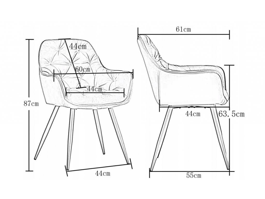- sedátko: šířka: 44 cm, hloubka: 46 cm