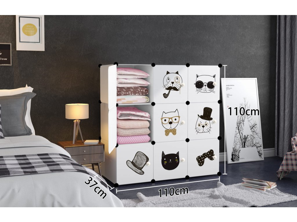 Modulová dětská skříňka s pohádkovou tématikou je skvělým doplňkem do každého dětského pokoje nebo ložnice. Skládá se z 9 modulů, z nichž každý má dvířka s pohádkovým potiskem.Každý modul lze uspořádat podle vašich potřeb v libovolné konfiguraci ve vztahu k sousednímu modulu.
