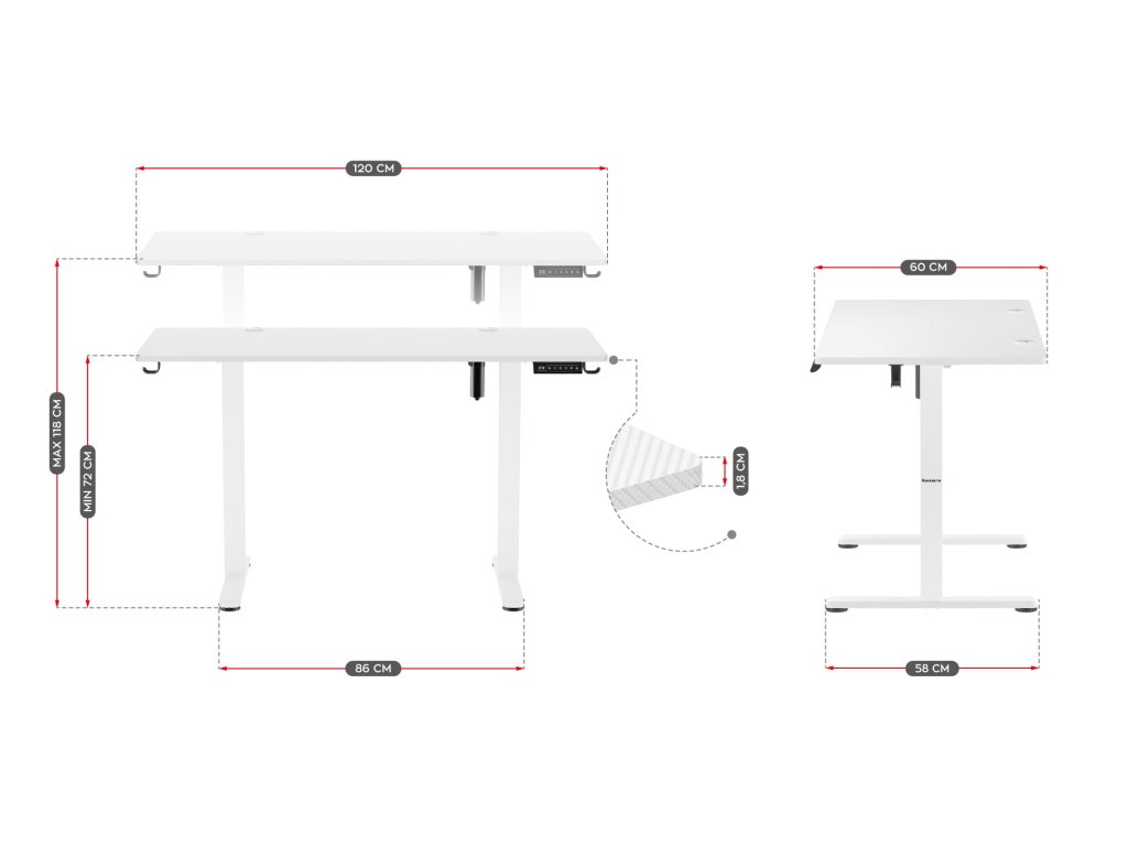 - Výška desky stolu: min 72 cm - Max. 118 cm