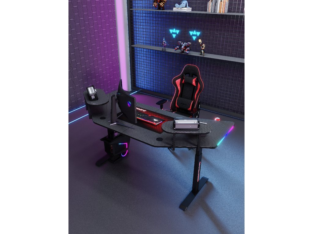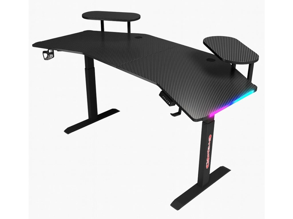 ✅ stabilně stalową rame i regulowane stopki. - Největší model – pohodlná stolová deska o rozměrech 160 x 65 cm – poskytuje prostor pro práci i hraní. Je robustní, s paměťovou výškou a ambientním osvětlením.