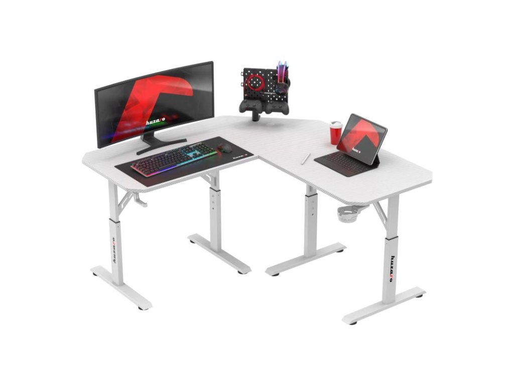 Promyšlený, hranatý design se perfektně hodí do   rohu místnosti a maximalizuje tak prostor. Rohový herní stůl je skvělým řešením pro hráče, kteří hledají kompaktní, ale plně funkční pracovní stanici.