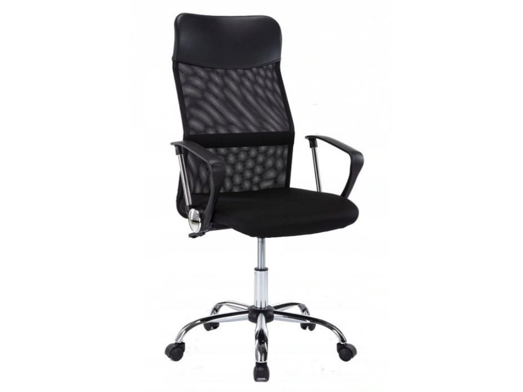 Křeslo je vyrobeno z kvalitní ekologické kůže a měkké pružné černé síťoviny . Pětihvězdicová chromová základna poskytuje stabilitu a nylonová kolečka zabraňují poškrábání podlahy.