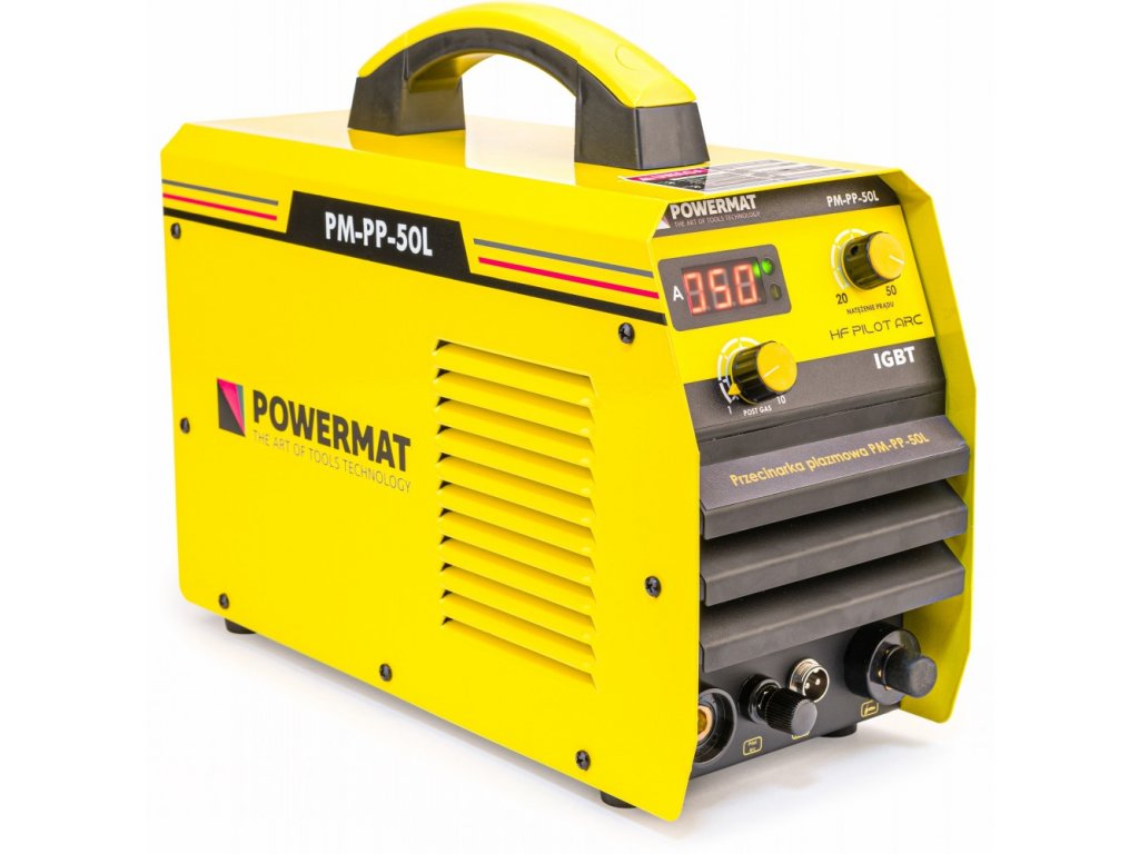 Plazmová řezačka Powermat PM-PP-50L umožňuje řezat elektricky vodivé materiály, jako jsou nelegované, legované, ušlechtilé oceli, hliník, měď, nikl nebo litina. Zařízení je vyrobeno technologií IGBT . Tato technologie, jako žádná jiná, zajišťuje nejvyšší výkon. Ve srovnání s množstvím odebíraného proudu dostaneme nadúměrné množství výkonu. Řezný proud je velmi stabilní, což zaručuje vysokou kvalitu řezu. Díky technologii IGBT je zařízení lehké a kompaktní. Umožňuje řezání s proudem až 50 ampérů při 60procentním zatížení , což umožňuje řezat materiály až do tloušťky 12 mm.