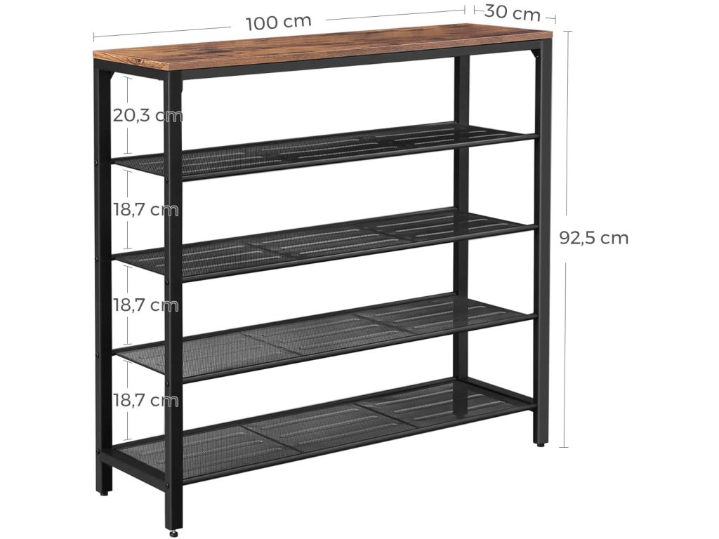 Vzdálenost mezi policemi na boty: 18,7 cm