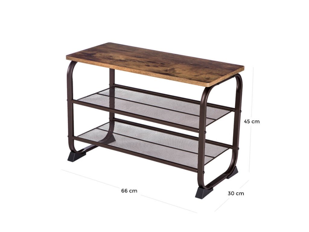 Industriální botník se sedátkem je velmi praktický a elegantní kus nábytku, který najde své uplatnění v předsíni, chodbě či předsíni.Výrobek je vyroben převážně z oceli, což je velmi odolný materiál, odolný vůči vlhkosti a jakékoli deformaci. Skříňka jistě zapadne do dekorace mnoha interiérů.